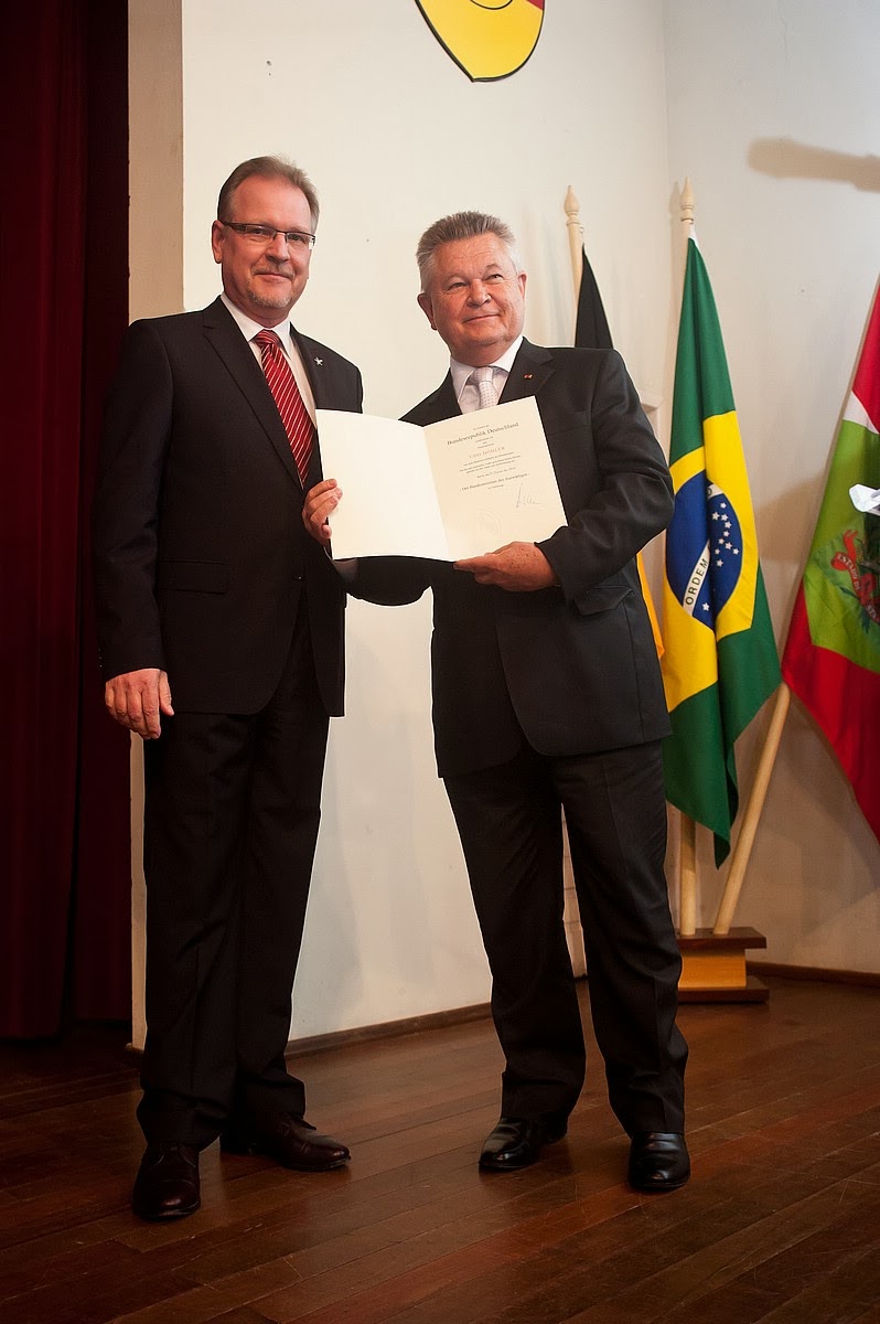 | Rodrigo Bornholdt recebendo o título das mãos do cônsul-geral da República Federal da Alemanha Stefan Traumann |